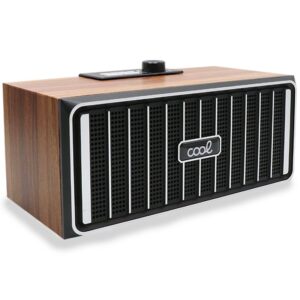 Altavoz Música Universal Bluetooth Marca COOL Retro (20W) Madera Nogal Frontal Negro