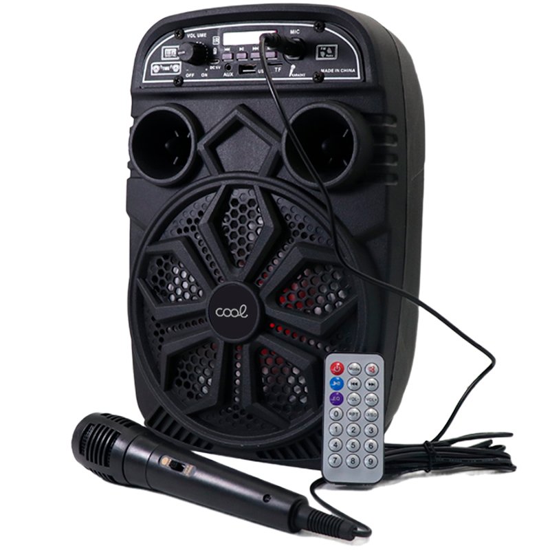 Altavoz COOL Karaoke 30W. Compatible con todos los dispositivos Bluetooth. Altavoz de alta fidelidad, sonido claro y nítido. El altavoz tiene un rango de distancia de hasta 10 metros. Con la línea auxiliar, puede conectar dispositivos externos como tablet, ordenador, televisión, móvil…